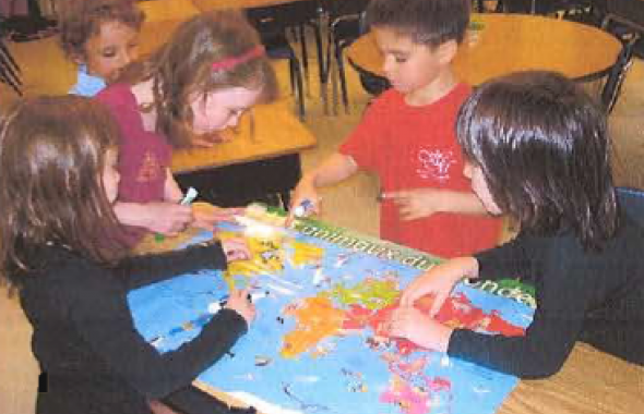À partir d’un album sur les animaux, les élèves apprennent à comprendre le rôle des organes des sens et à classifier les êtres vivants. Des recherches documentaires liées à des activités de terrain permettent aux les élèves d’observer et de situer les lieux, de comprendre et utiliser le langage des cartes pour découvrir son environnement proche. La correspondance avec une classe des Etats-Unis a permis d’identifier des animaux de milieux différents et aussi de comprendre le mouvement de la Terre et les fuseaux horaires.