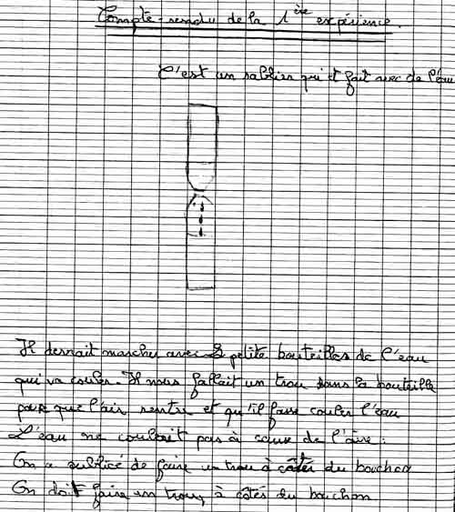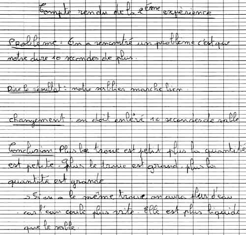 compte rendu de l'expérience | Verbaliser, argumenter, expliquer, justifier une expérience; appréhender le principe de l'écoulement |