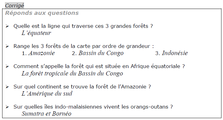 L’image du singe mangeant une banane est expliquée d’un point de vue scientifique. Le texte doit montrer ce que les élèves ont appris. Il comporte donc des mots clés obligatoires que l'enseignant peut écrire au tableau après les avoir faits trouver par les élèves : main, pouce, tenir, primate … Le texte sera écrit par les élèves avec correction collective pour aboutir à une production commune.