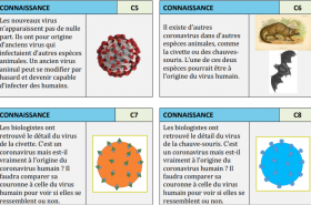 Les activités proposées dans le cadre du projet “Coronavirus. Comprendre pour agir” à destination des Cycles 2 et 3 ont pour objectif d’introduire les élèves aux aspects scientifiques liés à l’apparition d’une nouvelle épidémie : comment on identifie l’agent causal de la maladie et l’origine de l’épidémie, comment l’épidémie se propage. Ensuite, les élèves sont amenés à reconnaître le rôle de prévention de différents types de gestes et actions efficaces, en expérimentant ou en consultant des documents. Ils comprennent qu’il jouent un rôle actif dans la prévention. Enfin, l’attention est portée sur la manière dont le corps se protège de la maladie. Quand les défenses naturelles ne suffisent pas, la médecine met à point des aides - traitements, vaccins - qui sont validés grâce au recours à des tests rigoureux, dont l’enfant apprend ici à reconnaître les principes de base
