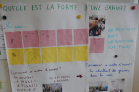 Après avoir exploré expérimentalement la question « graine » ou « non graine » au moyen de semis, les élèves ouvrent une graine pour observer ce qui la compose. Ils vont alors plus loin en se penchant sur les conditions permettant la germination, notamment le besoin en eau. Enfin, ils explorent la biodiversité des graines, de leur mode de dissémination, et des plantes qui en résultent.