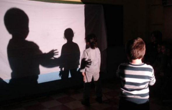 Résumé : Il s’agit ici de réinvestir les notions abordées lors des séances précédentes en proposant aux élèves de vivre des situations ludiques propices à la compréhension du phénomène des ombres. Pour commencer, les élèves jouent spontanément avec les ombres portées de leurs mains sur l’écran, puis se familiarisent avec des silhouettes dont ils projettent les ombres sur un écran blanc. Ils retrouvent les résultats constatés au cours des séances : l'ombre est noire, d'autant plus grande que l'objet est proche de la source. Ils peuvent reformuler ce qui est observé : l’objet opaque fait écran à la lumière et on ne voit l’ombre que par contraste, grâce à la lumière qui passe autour des contours de l’objet. Enfin, ils jouent avec les formes différentes que l’on peut créer en modifiant les positions relatives des trois éléments : source/objet/écran et réalisent que seuls les détails de l’objet qui sont en bordure compte tenu de la direction de la lumière donnent la forme de l’ombre. On peut donc obtenir une autre forme d'ombre en positionnant autrement l'objet. Ils réinvestissent ainsi les résultats de la séquence 3 : la taille et la forme de l'ombre dépendent de l'objet ET de la position de l'objet par rapport à la source de lumière.
