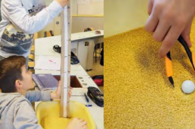 > Le diamètre d’un cratère créé par la chute d’une bille dans de la semoule dépend de deux paramètres : la masse de la bille et sa hauteur de lâcher.