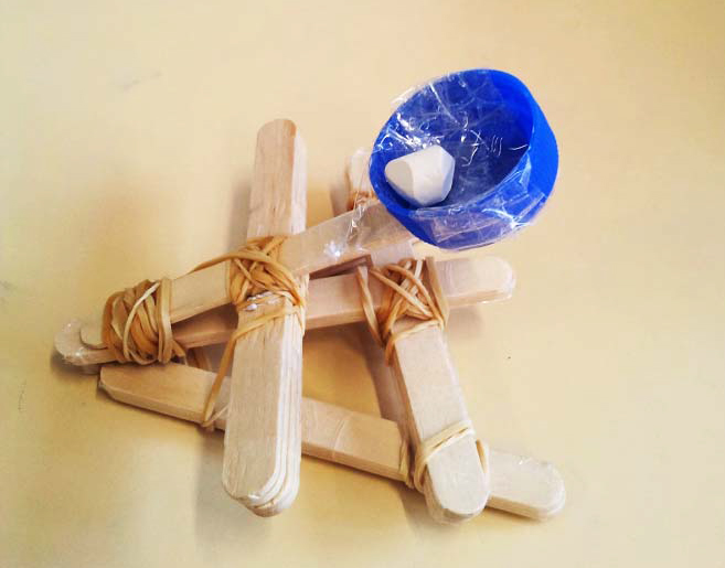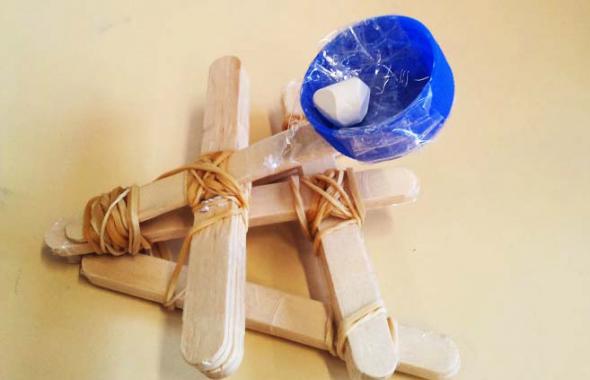 En prolongement d’une classe découverte « Histoire et Patrimoine » sur le Moyen‐Age au mois de mars, dans le cadre de l’ASTEP (accompagnement en science et technologie à l'école primaire), 2 élèves ingénieurs en mécanique, en collaboration avec les enseignantes, ont tout d’abord préparé la séquence : « Fabrication d’une catapulte ». Puis pendant deux semaines, les 33 élèves « mélangés » et répartis en deux groupes, accompagnés par leurs enseignantes et les élèves ingénieurs, ont vécu une réelle démarche d’investigation pour parvenir à la fabrication de leur catapulte.