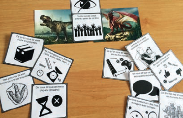 Déroulé : Après avoir écouté et compris deux textes décrivant deux créatures – un dragon et un dinosaure – les élèves donnent leurs idées initiales sur l’existence ou non de celles-ci (phase 1). A l’aide d’un jeu de cartes, ils repèrent dans chacun des textes les éléments qui indiquent qu’on a affaire à une créature réelle ou imaginaire, et s’exercent à argumenter (phase 2).