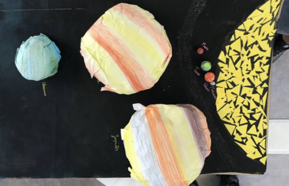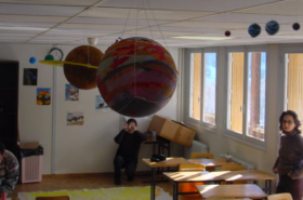 19 élèves de CM1 et CM2 ont mobilisé leurs connaissances du système solaire pour appréhender les notions de proportionnalité. La réalisation de deux maquettes à l’échelle, l’une collective exposée dans l’école et l’autre présentée sous forme d’une pochette comportant les planètes et des fiches explicatives, est à l’origine de ce projet. Envisagé sous l’angle de l’interdisciplinarité en abordant des domaines aussi divers que les mathématiques, la technologie et les arts plastiques, ce projet a offert l’opportunité aux enfants de proposer des protocoles expérimentaux, de créer des maquettes tout en évaluant leurs réussites et leurs difficultés.