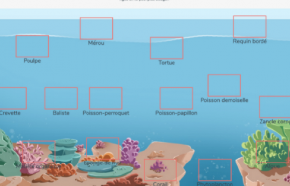 Trouve les bons noms pour toutes les espèces et essaye de découvrir qui mange qui dans six écosystèmes marins différents.